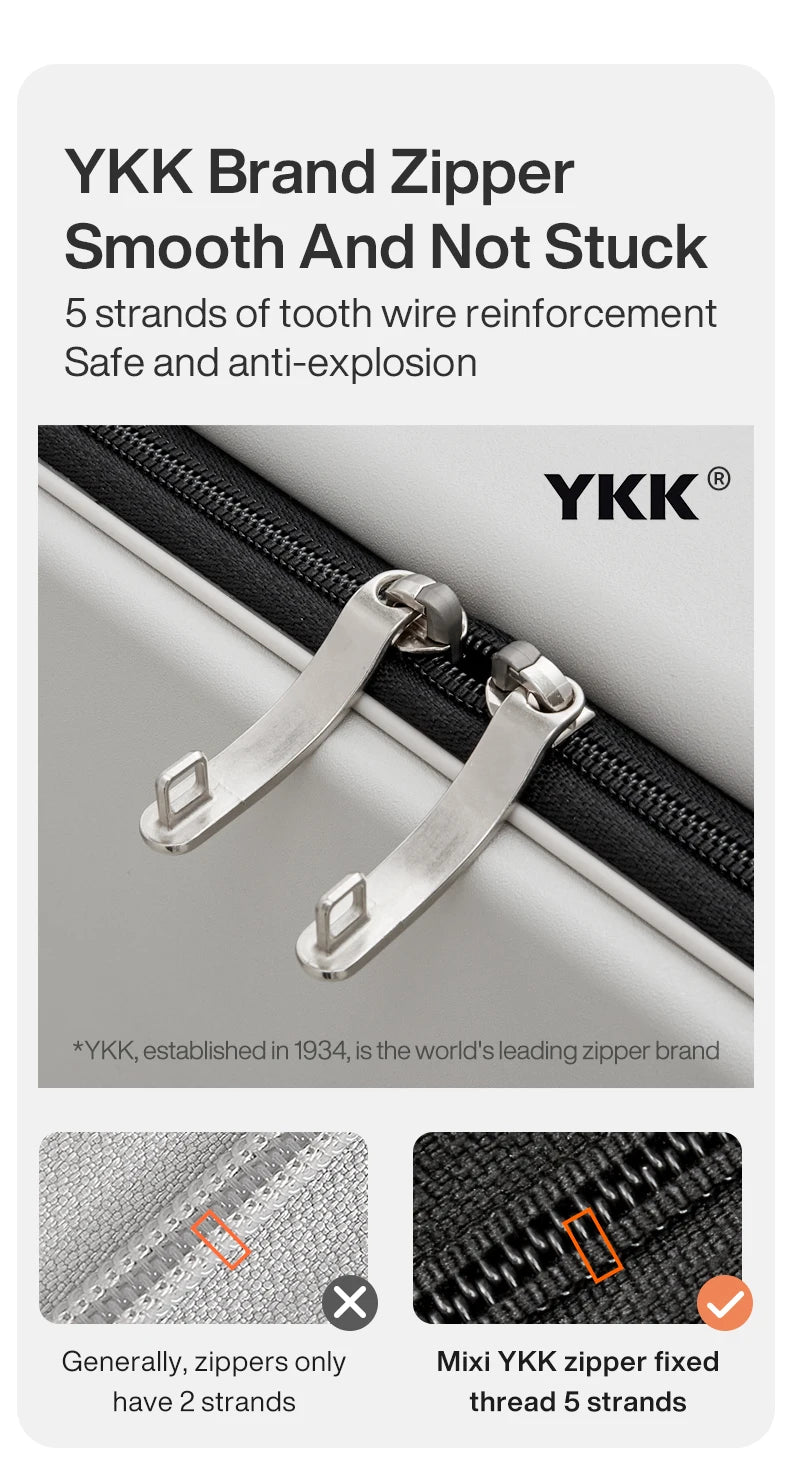 •Silent and Elegant Spinner Wheels: Equipped with American SJ Turbo brand hollow spinner wheels, this suitcase ensures smooth and silent 360-degree movement, reducing noise and enhancing elegance.