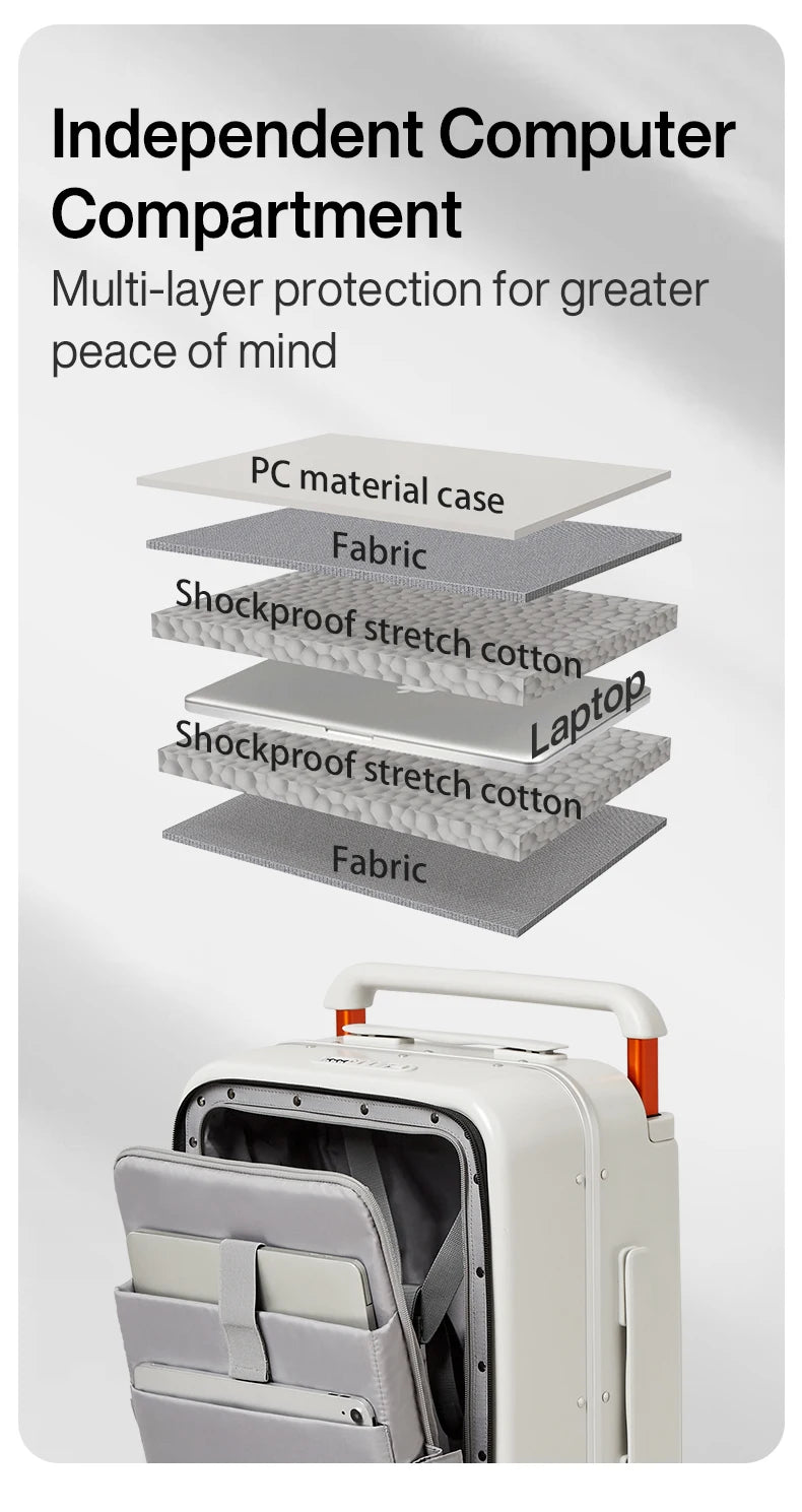 This suitcase is the ideal choice for those seeking reliable, elegant, and easy-to-use carry-on luggage, combining the best materials for a worry-free travel experience.