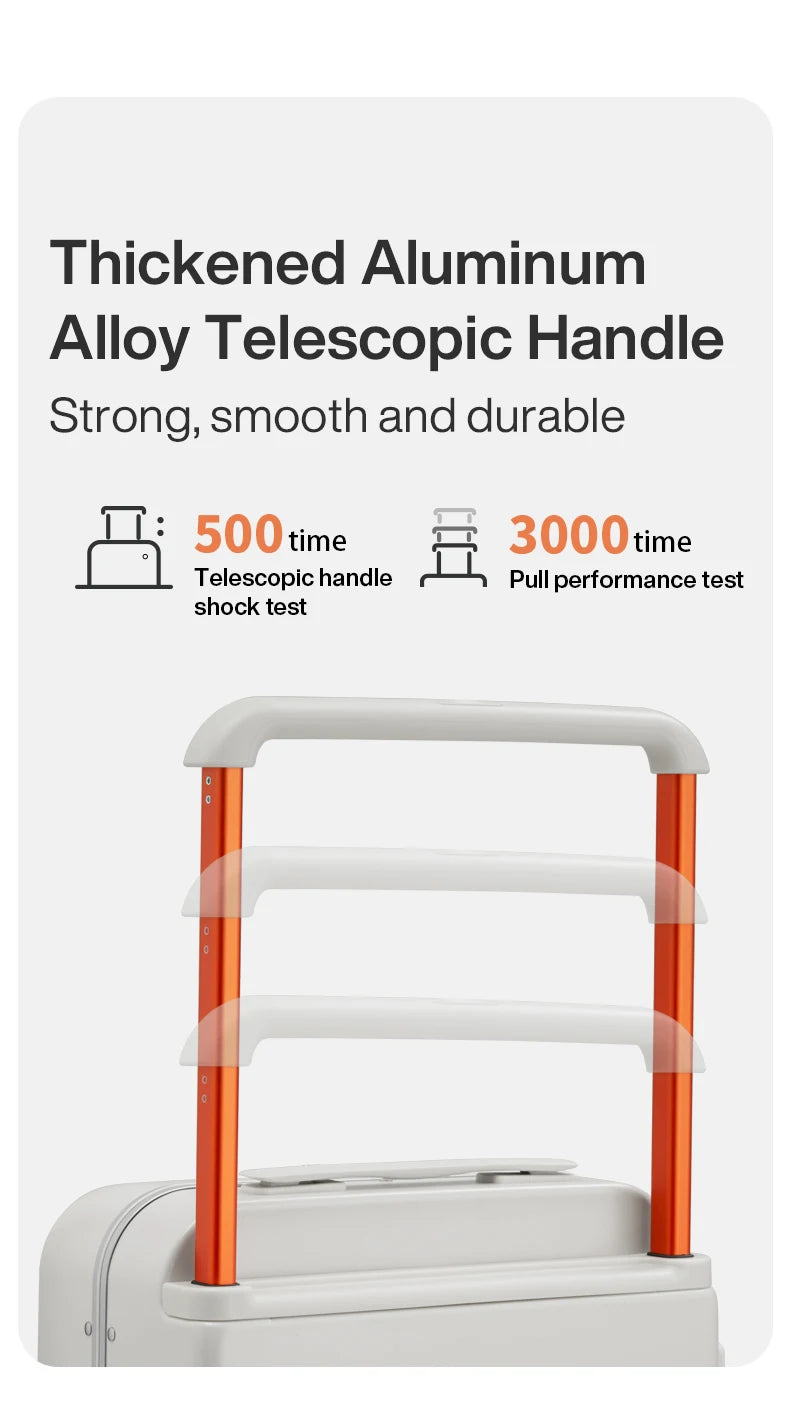 •Wide and Comfortable Telescopic Handle: The wide-design aluminum alloy handle provides an ergonomic grip and increased stability, making the suitcase easy to maneuver.